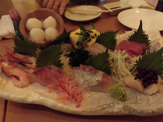 刺身盛りには鮪・中とろ・鯛・ハマチなどの4種。