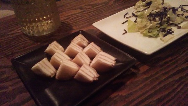 お通しのキャベツ漬けは醤油を垂らすと味が変わって激ウマ。