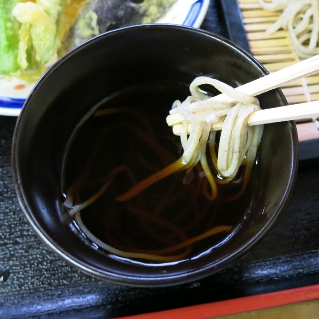 味は見た目から想像したほど濃くは無かったが、それでも蕎麦の風味を感じられ、楽しめた。また、噛み締めると甘味も出てきてかなり上出来の蕎麦と思いました。