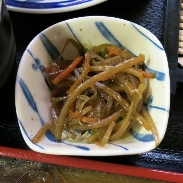 付いてきたキンピラだが、やや硬めで好みの食感。あまり辛くはなく、ちょっとしょっぱい味付けでした。