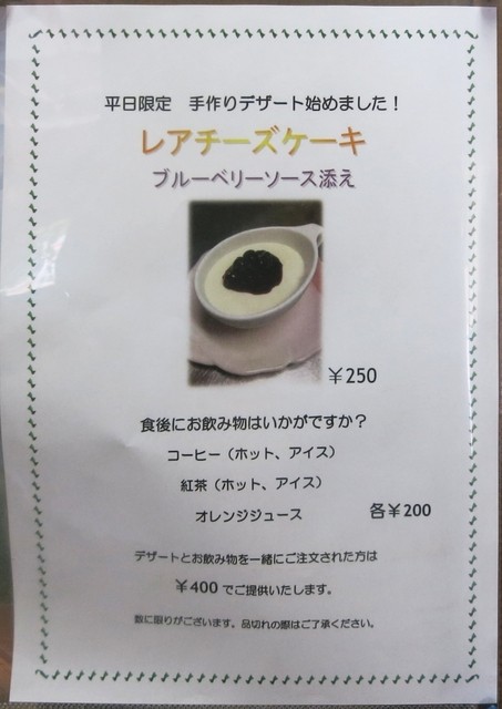 メニューは壁にかけてあるのと貼ってあるだけ。税別/税込の表示が無かったが税込でした。