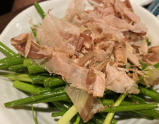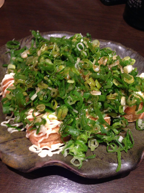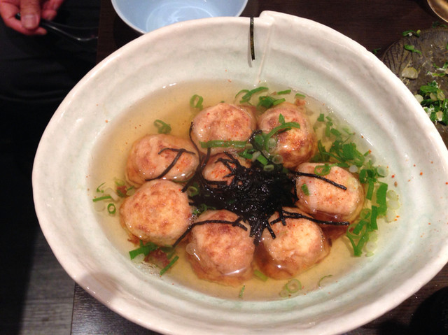 たこ焼きのオススメを聞くと、ネギがどっかんと乗ったのと、ダシに浸かったたこ焼きの案内。