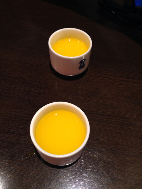 まず店内に入って座ると、ウコンがお猪口に入って届けられた。