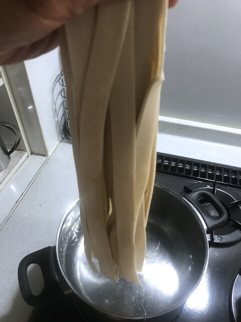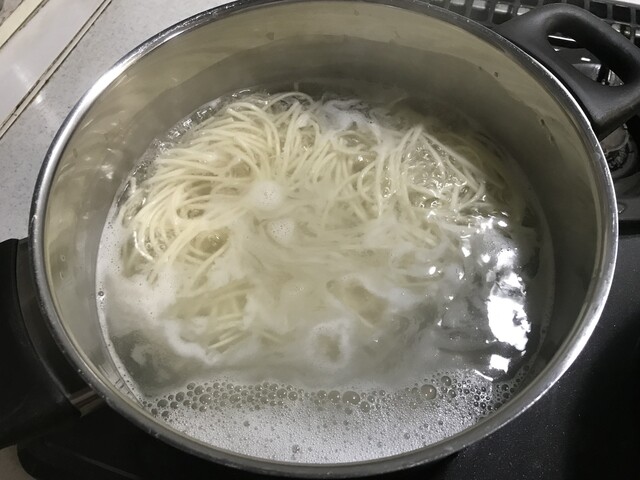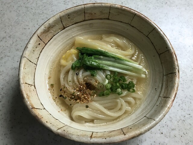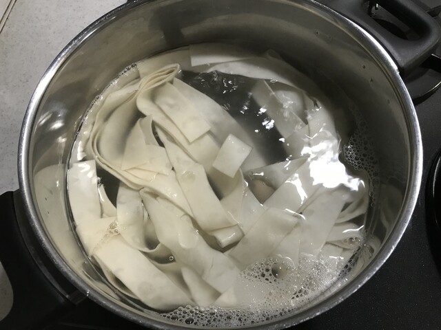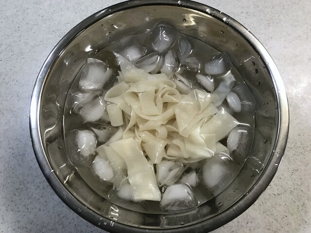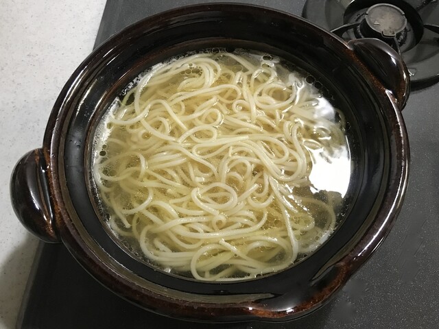 福島土産の多珂うどんを熱湯で8分茹でて水洗い