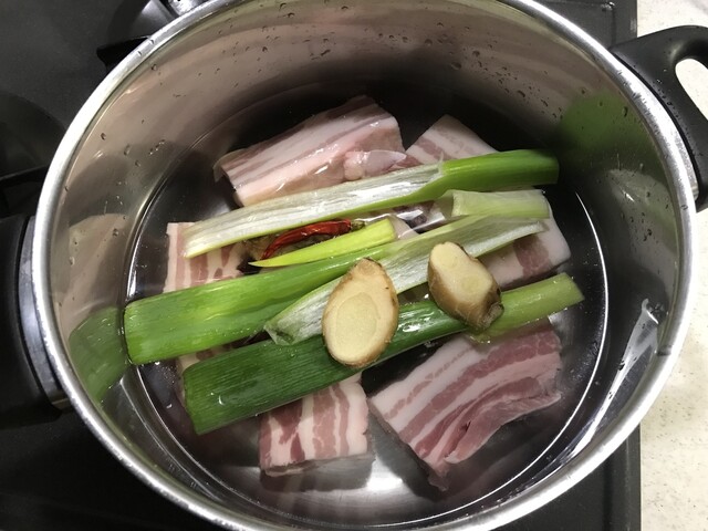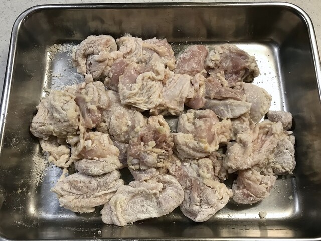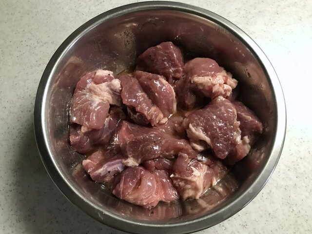 豚ロースに紹興酒・ごま油・塩・黒こしょうして片栗粉