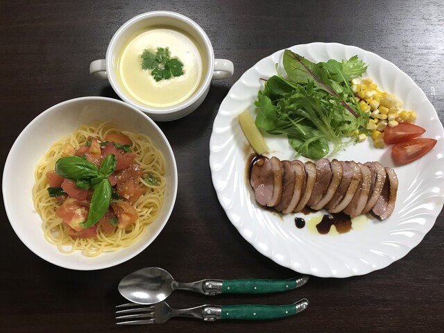 今夜はイタリアン「冷製トマトのパスタ」〜♪ (2020/08/20)