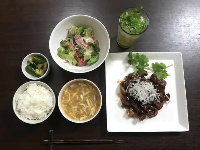 "パクチーモヒート" 飲みながら、今夜は「黒酢の酢豚」〜♪ (2020/08/28)