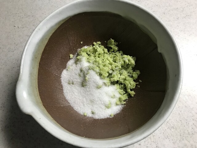 さらに砂糖と塩と一緒にすり鉢で擂ります