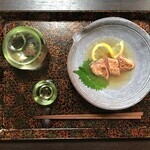 アテは田酒を入れた出汁で "焼きたらこの出汁かけ"