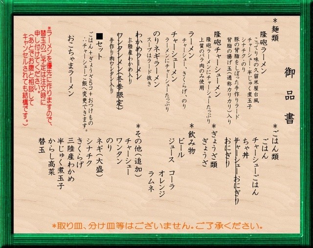 初めての方には、ノーマルラーメンをオススメして、2度目に隆砲ラーメンを味わって欲しいかなぁ〜と思いました(笑)