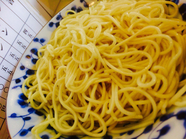 白っぽい中細縮れ麺で、コシが弱い印象でしたが、悪くはないと思います。