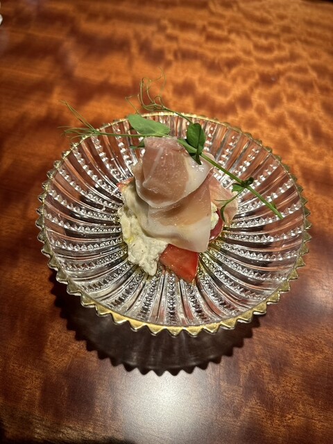 前半は魚介がメインでしたがジェノベーゼソースで頂く鯒(こち)の刺身や伊...