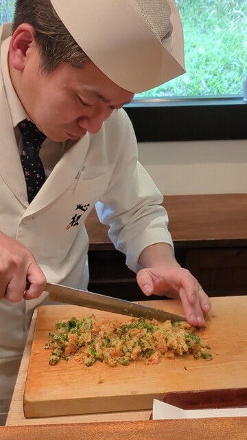 朝積んだノビル 木の芽 からすみパウダー 麹醤油 蕗の薹など色々と味を重ねてくれました。