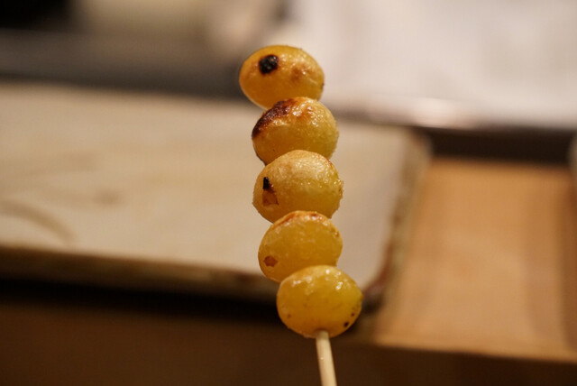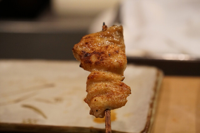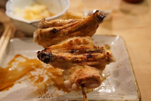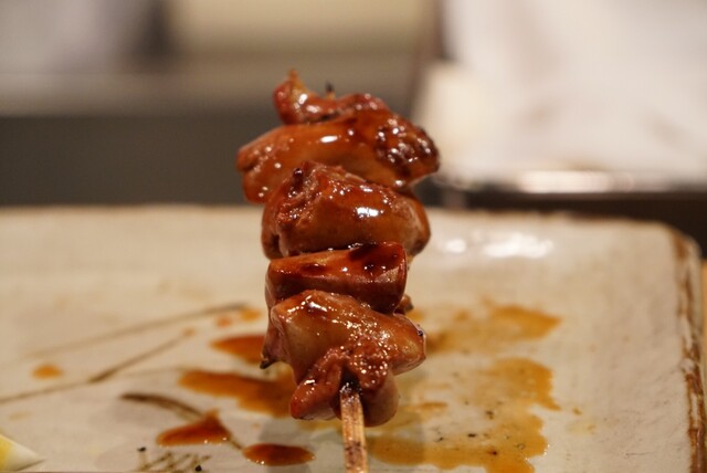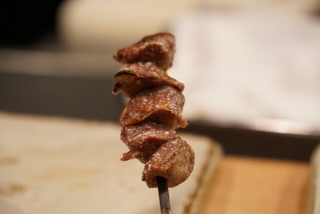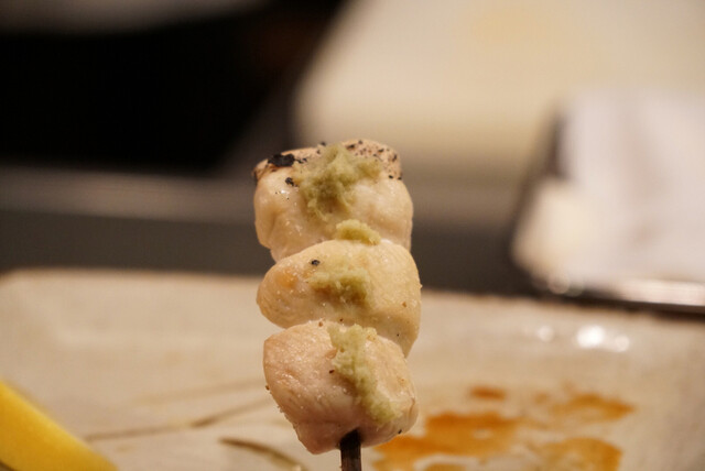 おまかせでお願いすると最初は胸肉のたたき、いわゆる「鶏わさ」が登場。少しだけ酢締めしたもので、自慢の伊達鶏本来の味を教えてくれます。そのあとの串は共通して、タレはわかりやすい濃厚な味付けで、塩もお酒との相性を狙ったような加減で提供されます。まるで、我々が屋外のイベントで塩を全て放出したのを知っていたかようです。串もお酒もすすむすすむ、イベント後にはぴったりでした。