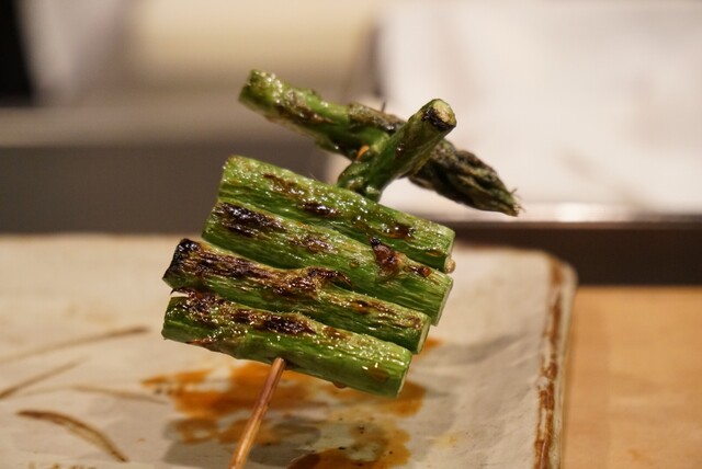 「皮」「アスパラ」「サビ焼き」「新玉ねぎ」