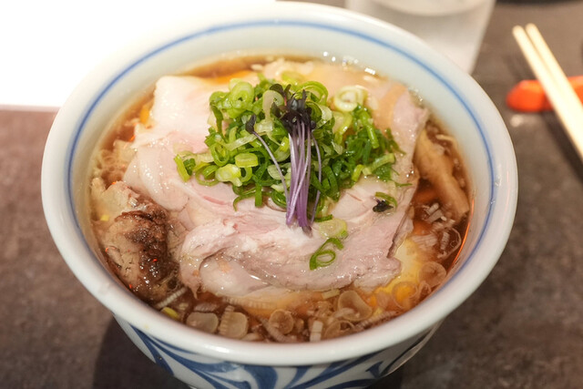 ただ、実のところ、彼らは隣人ではなくどちらかといえば「住人」だ。人形町を含めた日本橋エリアにあるクラフトビールの「NIHONBASHI BREWERY」や野菜ビストロの「UNION SAND YARD」を展開する株式会社ZOTがオープンさせた新店なのです。地元へのこだわりはラーメンにも込められており、食材や調味料に同エリアの老舗の名前が並ぶ。海苔に1849年創業の日本橋室町の山本海苔店、鰹節に1699年創業のにんべん、ご飯ものに日山の肉といった感じです。