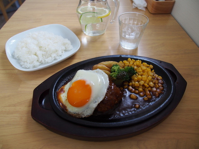 内装はさすがに新しくて、シンプルですが心地よいですね。後から考えても週替わりランチが一番お得だったのですが、やはり洋食屋さんですから、ハンバーグをお願いしました。飲み物は無難にホットコーヒーをお願いしましたが、驚いたことにワインや生ビールも選べるみたいです。歩いて来ることの出来る方が心底羨ましい(笑)