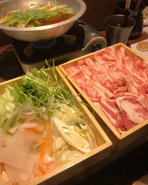 鰹出汁で食べるしゃぶしゃぶが気になってお邪魔しました。タレを付けずに食べる、味、薄くない?と少し思っていたのですが、、、鰹出汁が絶妙な濃さで、めちゃくちゃ美味しい!!!豚肉と一緒に出てくるお野菜も、根...