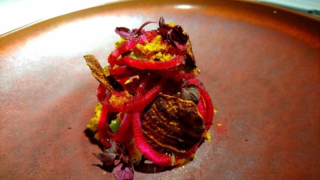 ●長野産ビーツ、カラスミで風味つけをしてあります。赤シソ。。。