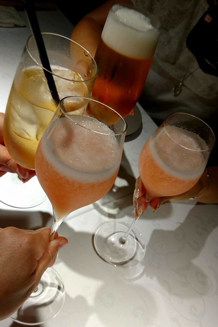 ドリンクメニユーを見て、シャンパーニューとピーチを合わせたベッリーニを選び乾杯♪