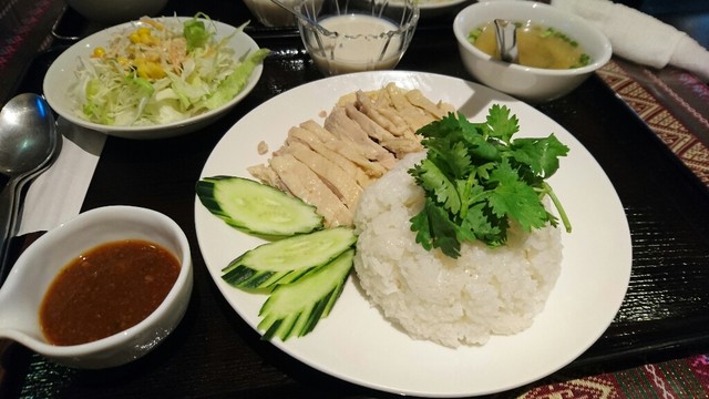 14:15、いつも並んでるのに空いていたので、これはと思って入店っっ!カオマンガイ