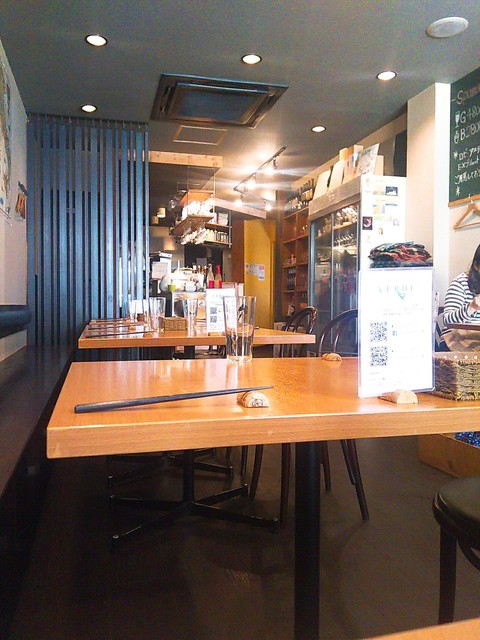 店内はオシャレでいい雰囲気です。カウンター席とテーブル席が近いのでオッチャンが座ると間が通れないのが少し残念かな。