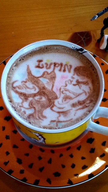今回は恋人と二人で行きましたが僕にはルパン三世、彼女にはキティのラテアートをしてくれました。