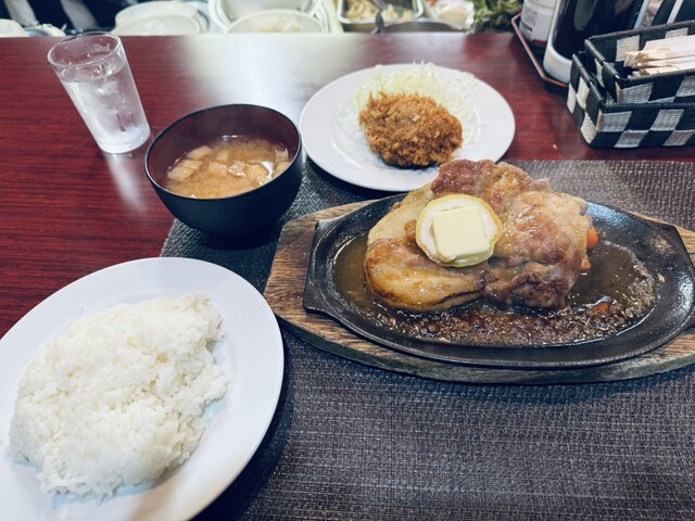 カウンター席につき、岩中トンテキ、メンチカツを注文。