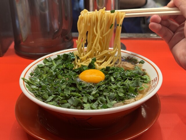 出汁感は少なめで醤油ダレが濃いめでしっかりとした味わい。スープの主張よりかはニラをメインにニラを引き立たせるシンプルなスープ。