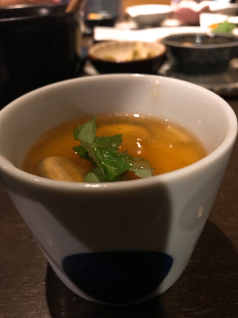 こちらの茶碗蒸し、餡掛け風の出汁がたっぷりと掛けられていました。温かい茶碗蒸しも良いですが、コースの中にこういった変化があるのも良いですよね(^_^)