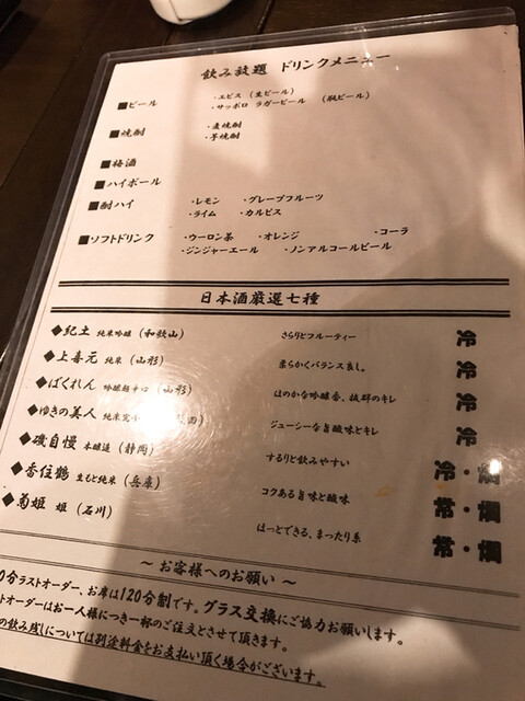 なんとばくれんを含めた7種類の日本酒が¥1500で飲み放題とのこと!!!これはばくれん好きには堪りませんね〜(^o^)