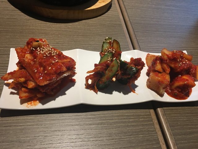 ◾️キムチ盛り合わせ 三種類のキムチで辛すぎず美味しい