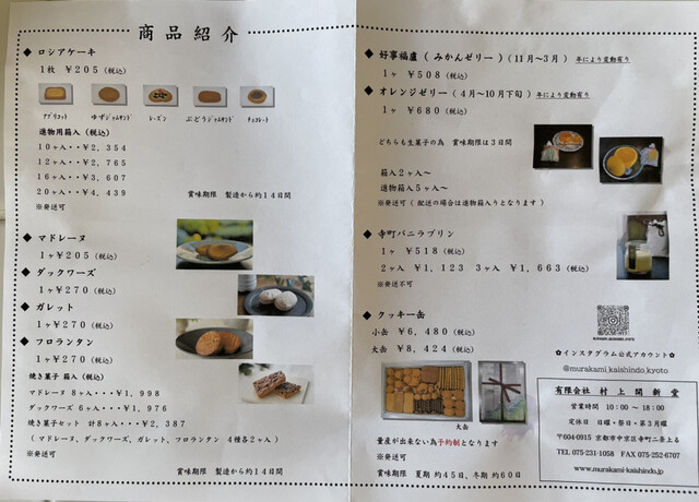 村上開新堂(京都市役所前、神宮丸太町、三条/洋菓子、和菓子)