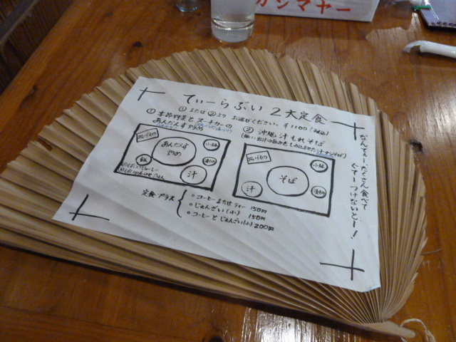 クバの葉に書かれたメニューに載ってた2大定食のうち、