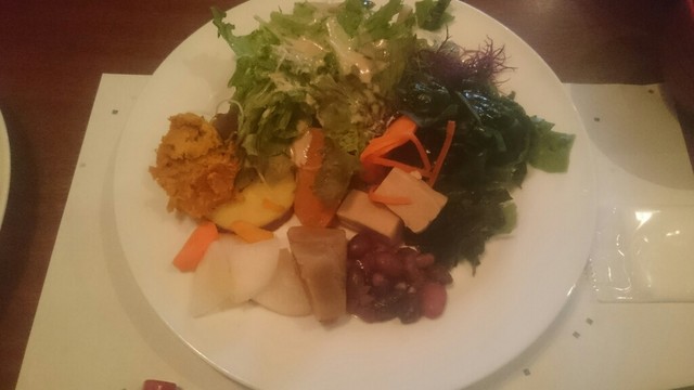 ランチビュッフェ!! 野菜が美味しいと評判のお店に訪れてみました~ 店内は少し狭目?夜だ