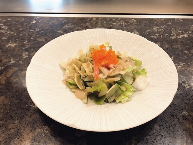 ②海鮮サラダ(ズワイガニとカニ味噌ソース)