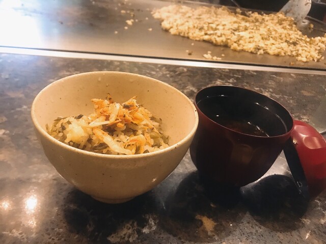 →焼き飯は高菜とご飯を炒めて上に香ばしい桜エビを!ご飯の量は調整してもらえるのも嬉しい!お茶漬け風にできたらもっと嬉しいかも!