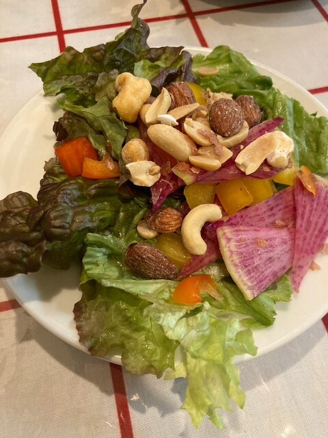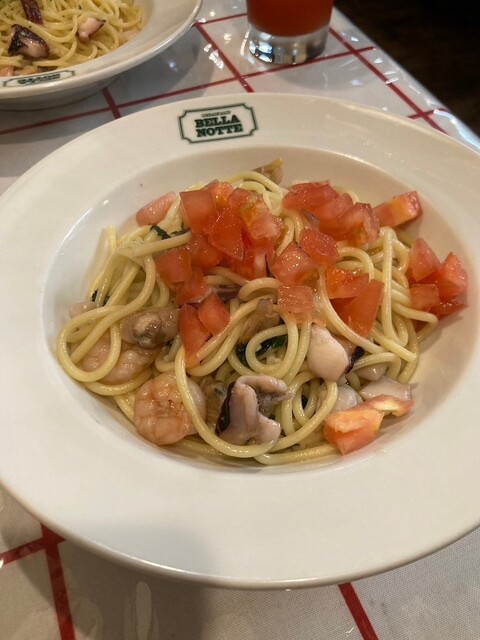 ミートボールのパスタがおすすめとローランドさんが言ってましたが、お肉が苦手なので、大葉バジリコ×シーフードにしました。麺が選べて太麺にしたのですが、もちもちでとっても美味しかったです。