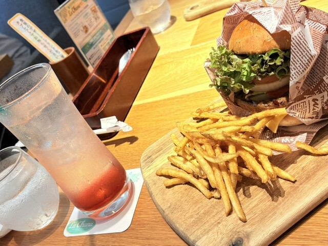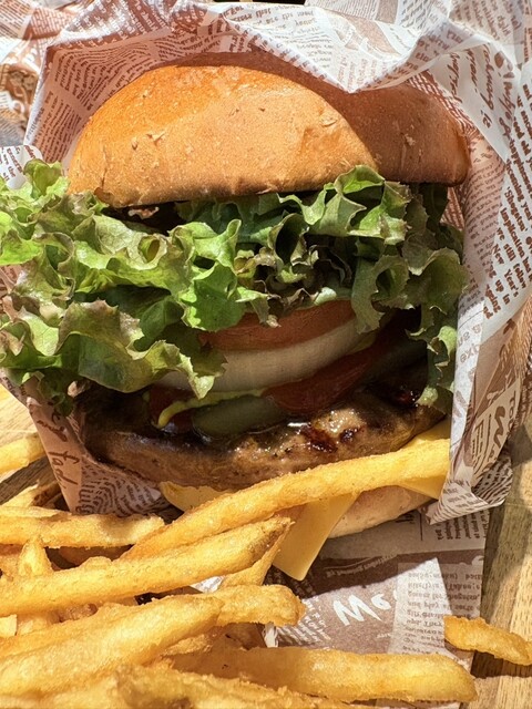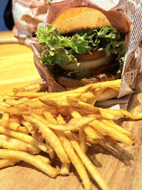 カリカリのフライドポテトもおいしいし、ふわとしたバンズとジューシーな野菜と肉のハンバーガーもとても美味しかったです。