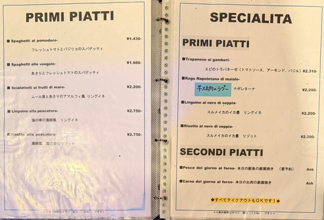 メニュー表を見せてくれり気遣わせてしまい反省