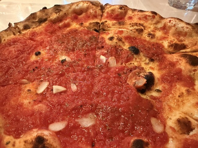 窯焼きのピッツァが名物で、生地は香ばしく、