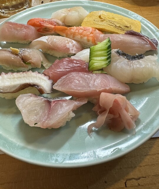 大トロ、中トロ、はた、ぶたい、うに、うなぎ、そでいか、島だこ、シメサバ2巻、細巻きでネギトロ、いくら、玉子つまみ。うにとうなぎだけは今ひとつ期待に届かなかった。ほかは、美味しい。特にシメサバは美味しく...