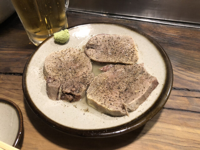 茹でたんはブラックペッパーと塩が振られて提供される。