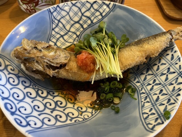 イワシの揚げたもの、フライ、刺身のランチセットをいただきました。刺身のタレや揚げたもののタレが梅風味で、イワシのおいしさを引き上げていて美味しかったです。刺身は新鮮で脂ものってやわらかくて最高でした。