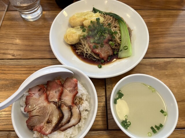 今回は雲呑撈麺と叉焼ご飯のセット。