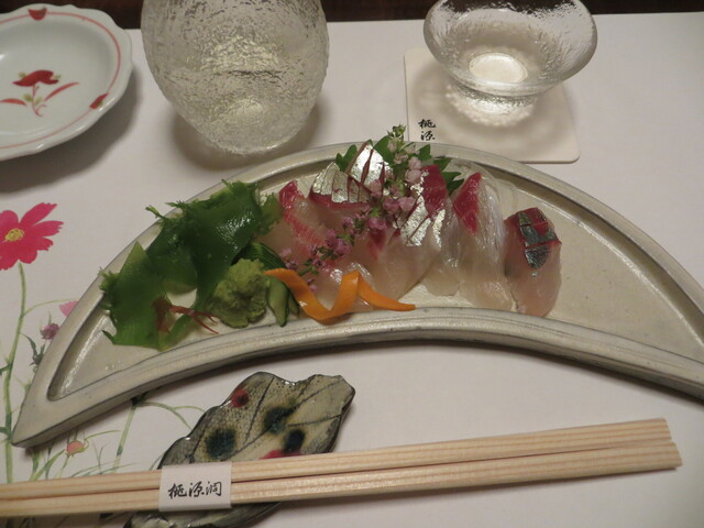 刺身は縞あじ- 昨日も食べたけど、また違う味わいで美味しい。脂より、コリコリとした歯応えと新鮮な風味が印象的で、より天然っぽい。