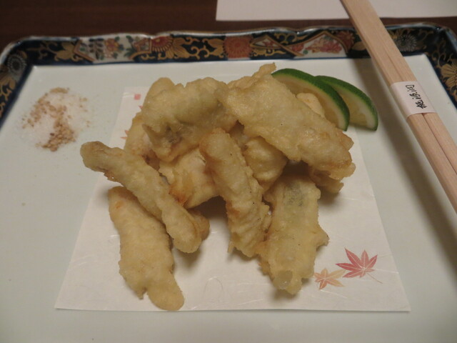 「穴子天ぷら」は白眉。対馬産とのことだが、固体は大きくはなさそうだが揚げ方が素晴らしく、コリコリプリプリしていて、非常に美味しい。何でもサイズが大きくて脂が乗っていれば簡単に上手い料理になり易いが、このお店は明らかに別の価値観と方向性をもっていると思う。