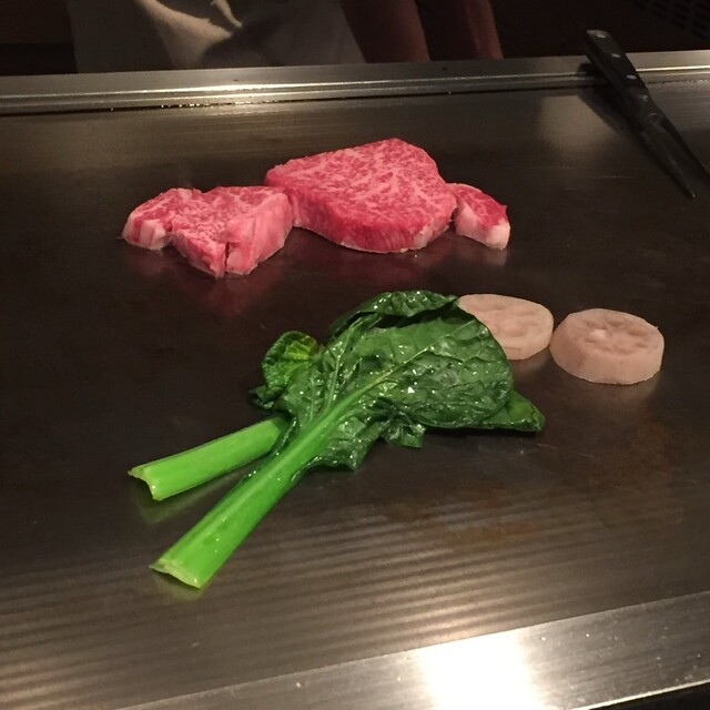 ライブ感満点の鉄板カウンターで、和牛と旬魚を堪能