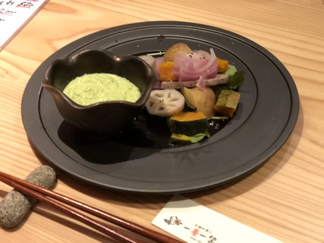 茶豆のポターシュで食べるサラダと、