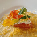 天井の高い開放的な雰囲気で外を見ると白樺の生えているゴルフ場が...